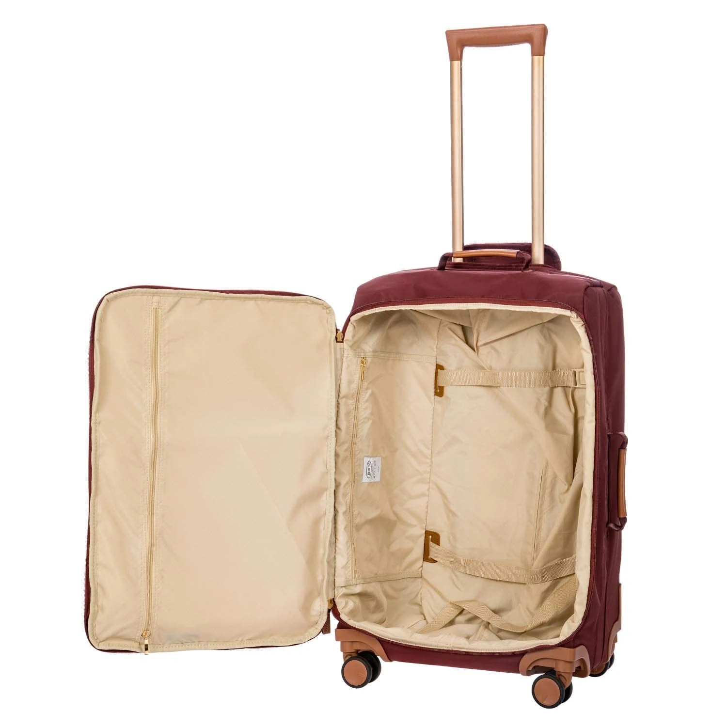 BRIC’S new and improved X-Bag spinners now consists of a structured and sturdy framing system. The entire X-Bag line is based on the concept of transform-ability and function. Thanks to its new shapes, patterns and refined details, it will be the must have fashion accessory. BRIC’S core colors of this collection include black, olive, navy and red. Certain pieces available in all color ways. BRIC’S X-Bag X-Travel stands for convenience in everyday life, a fashionable assortment of travel bags that you can trust. This 21″ carry-on spinner is extremely lightweight but still contains the roomy interior to allow you to pack all of your belongings for a 1-2 day trip.