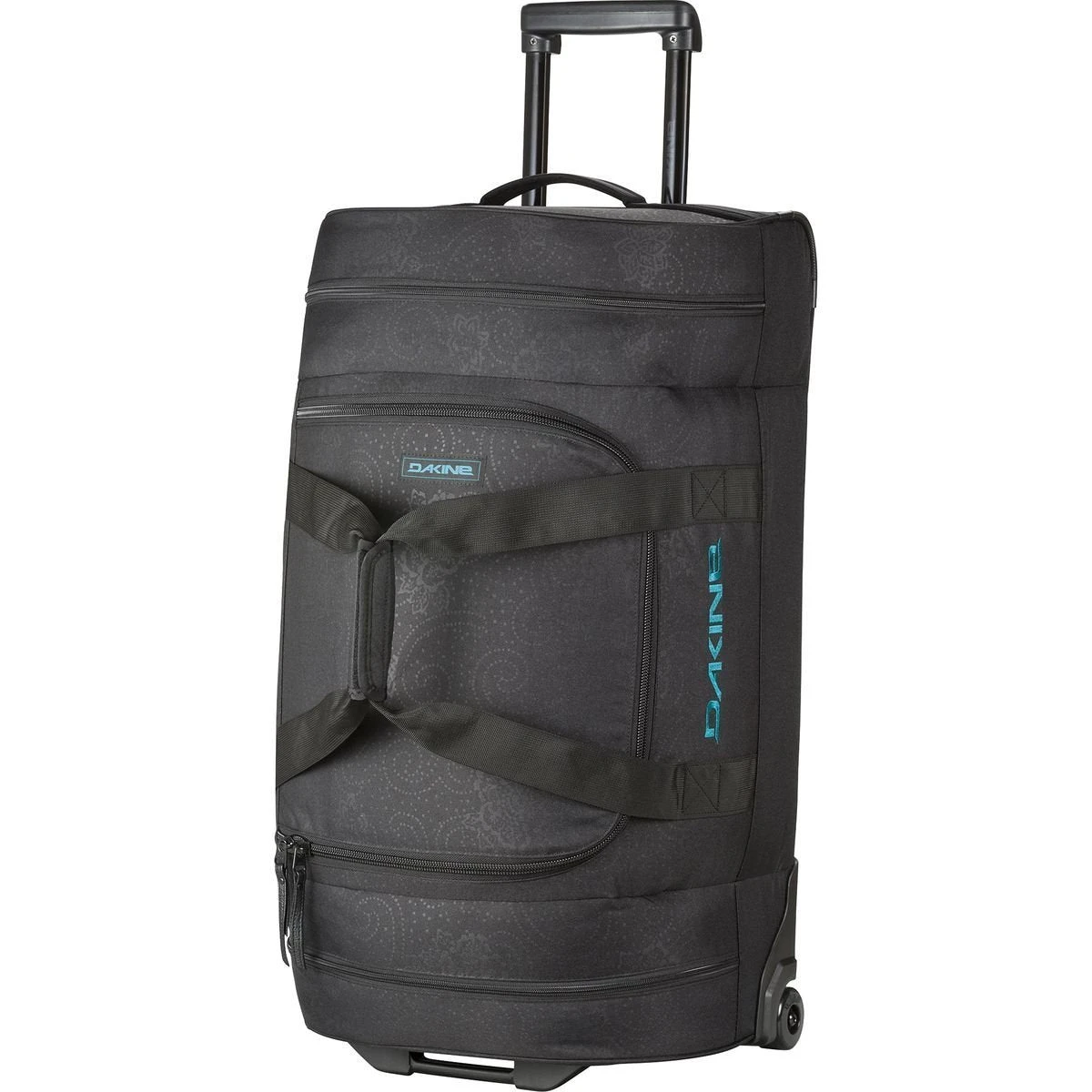 The 58L Dakine Duffle Roller is simple and sturdy. The two exterior zippered pockets at either end are great for keeping your necessities separate from everything else and the perfect spot for cozy slippers. The large zippered opening allows for easy access to the main compartment and the interior zippered mesh pocket neatly organizes all your little things. The retractable handle and replaceable urethane wheels ensure a smooth and reliable ride to and from the airport. Throw in two reinforced duffle handles and this bag can be easily tossed over your shoulder so you can get to the car and on with your epic adventure