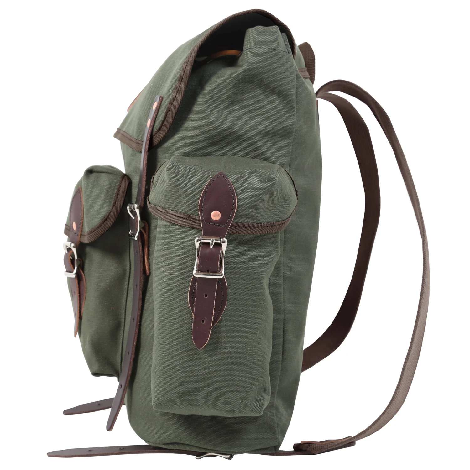The Wanderer was designed to be the best all-around outdoor pack. The pack’s handcrafted rugged canvas is built to stand up to the high standards of everyday adventures.Two side pockets with buckling flaps. Double buckle front pocket Cotton web shoulder straps that are comfortable from day one. Tough 15 ounce cotton canvas construction. Guaranteed for life. Â Made in the USA.