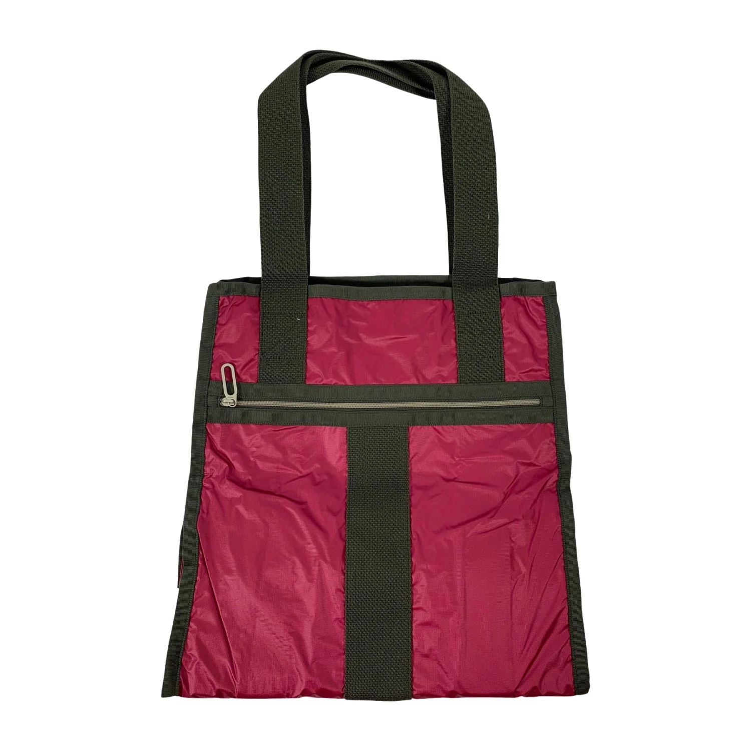 - Interior front wall zip closure pocket, Top side gusset snaps to adjust size of top opening