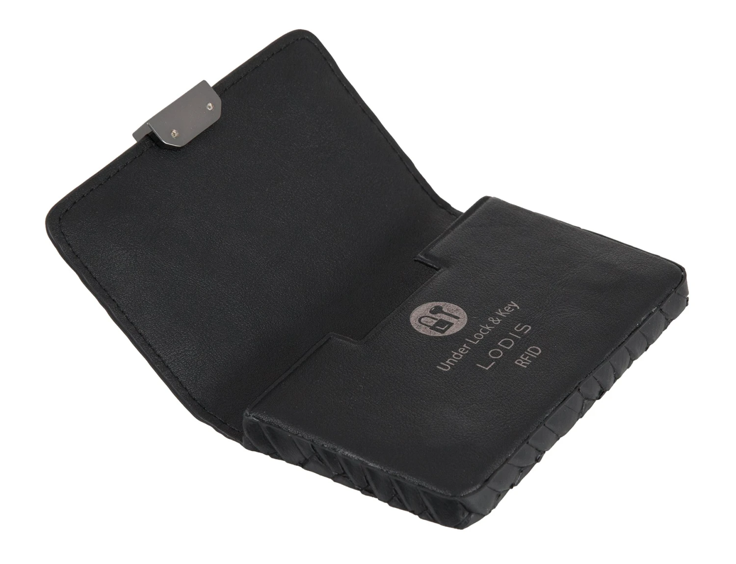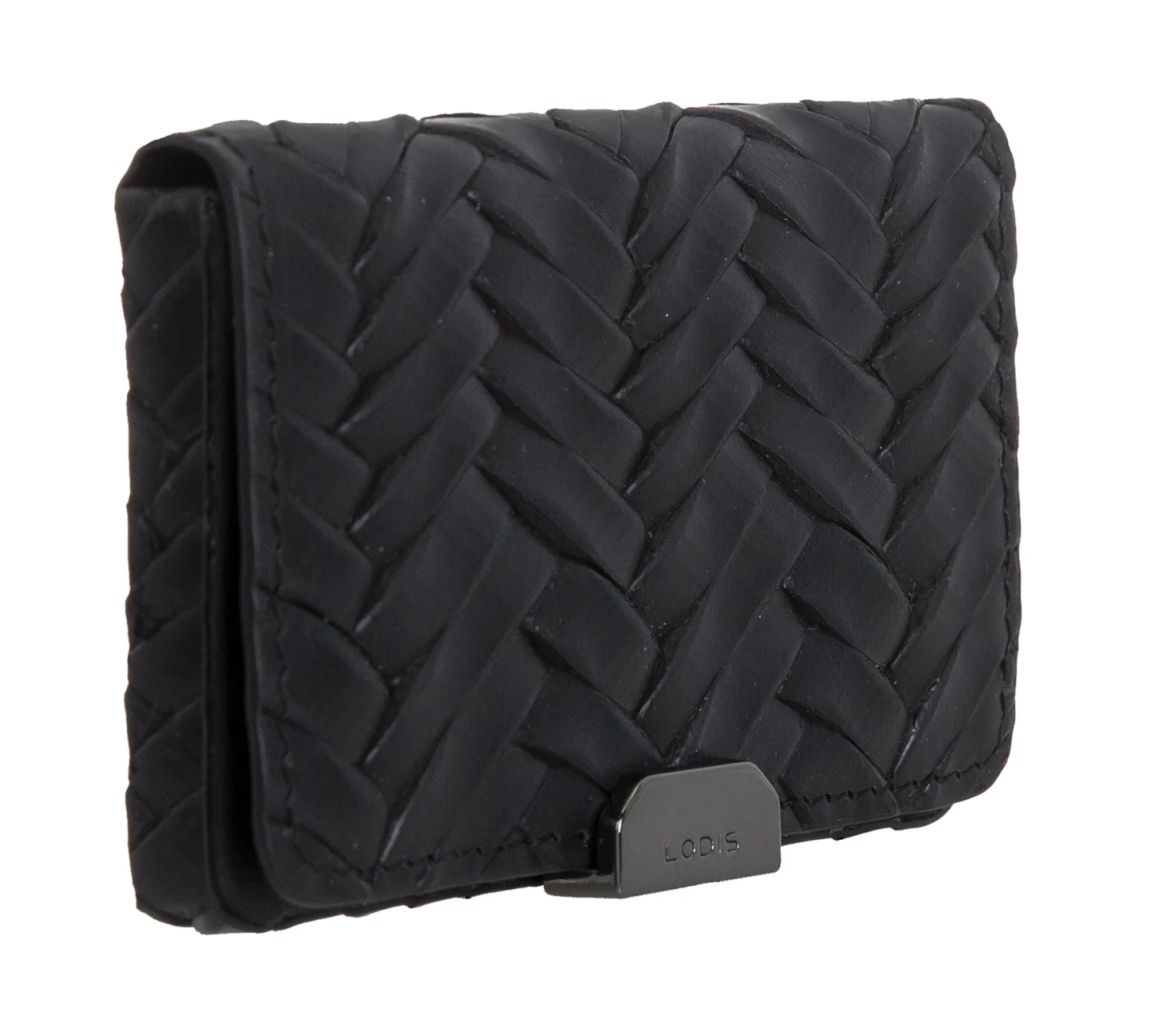 Textural and playful, the Nova collection by Lodis offers a fresh mix of classic tailoring and a not-so-classic woven embossed Italian rubberized leather. It features gunmetal jewelry-grade hardware, and Lodis Under Lock and Key (trademark pending) RFID protection. Chic business card case holds up to 30 business cards – for the businesswoman with the heart of a fashionista. Features: Magnetic closure, Holds up to 30 business cards or 12 credit cards One year warranty against manufacturing defects.