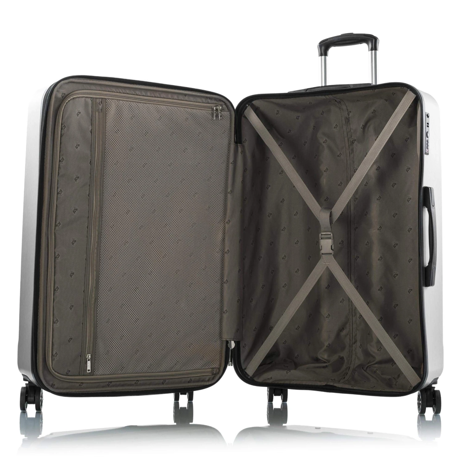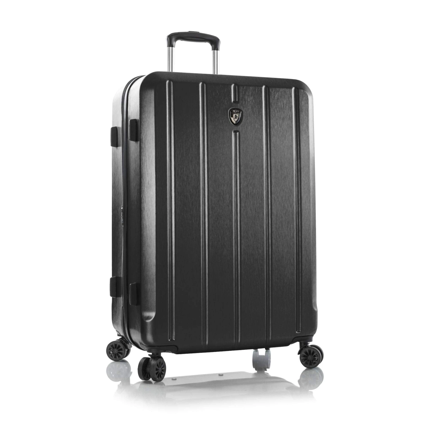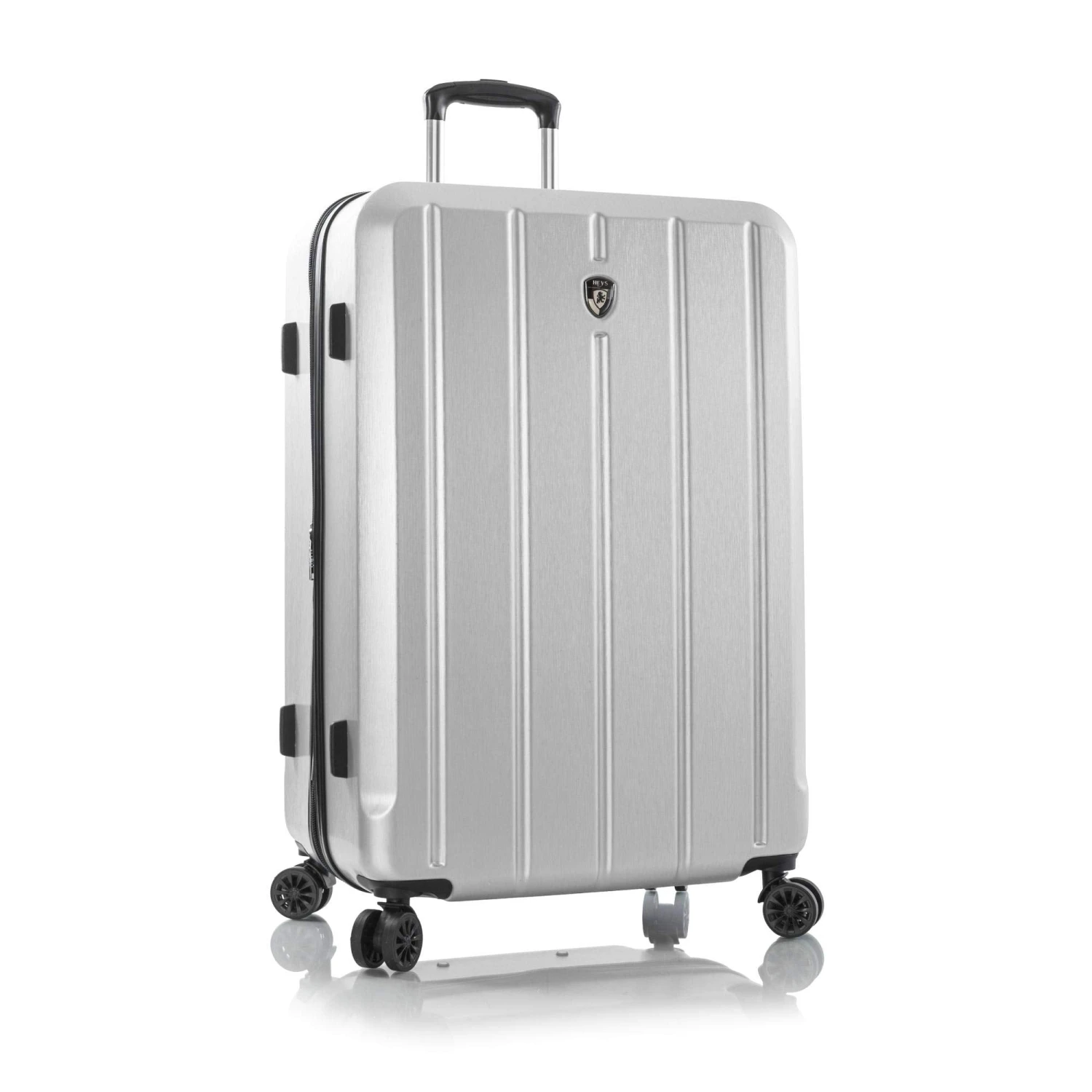 Size requirements vary among airlines. Please check with your airline forcarry-on luggage size restrictions. Get a handle on your travel gear with ago-to Heys America 21″ Para-Lite luggage that’s ideal for anything fromstaycations to trips far away. Made of a lightweight polycarbonate compositewith a brushed metal texture. Metal corner guards. Features a fully-linedinterior with zippered divider, buckled compression straps, and zipperedpockets. Flush mounted built-in TSA combination lock. Zipper-releasedexpansion system allows for an extra 20% in packing capacity. Gel-cushionedtop and side handle. Lightweight aluminum push-button telescopic handle systemwith multi-stage locking heights. 360 spinner wheels allow for effortlessmotion in different terrains. Imported. Measurements: Width: 14 in Depth: 8 inHeight: 21 in Weight: 6 lbs 5.4 oz