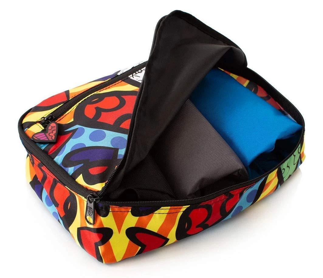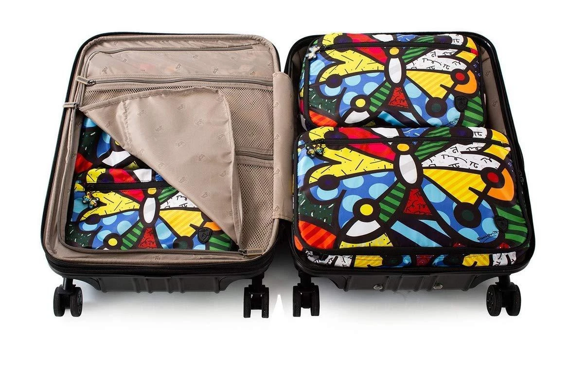 Our best-selling packing cubes just got better! Introducing our new BrittoPacking Cubes, part of a Limited-Edition Series of travel accessories. Born inBrazil, Romero Britto is a Florida-based neo-pop artist, painter, serigrapher,and sculptor. Combining elements of pop art and graffiti painting, Brittossignature style is recognized worldwide. Now you can match your packing cubeswith your luggage. These fashionable cubes offer the same great features butin a brand new and colourful design, featuring a bold and vibrant Brittoartwork that will make packing fun and easy. Made from soft satin-finishedfabric, they are both durable yet lightweight.