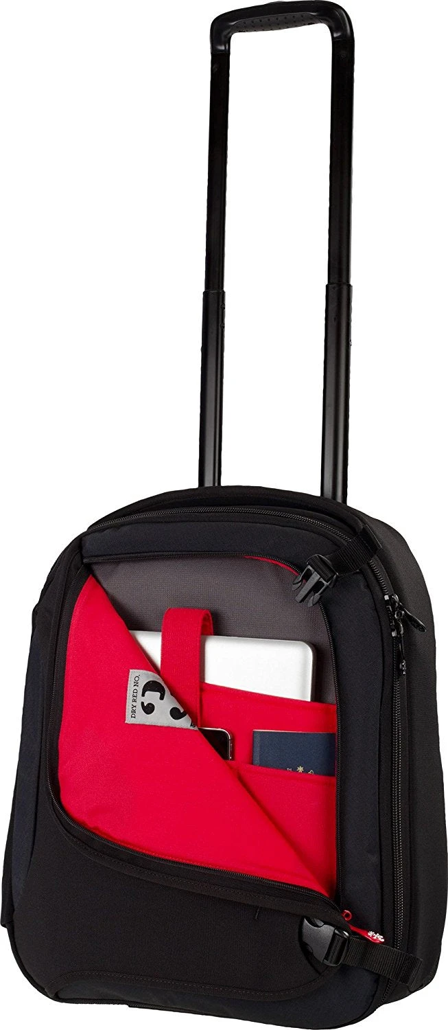 Light in weight, heavy on features, and just right for short stays or overnighters, this compact wheeled luggage adapts to your needs. As carry on luggage, its accessible front pocket will hold your laptop and personal items, while the main compartment holds your clothing. As check in baggage, the whole thing locks up to ensure your belongings remain secure for the journey.