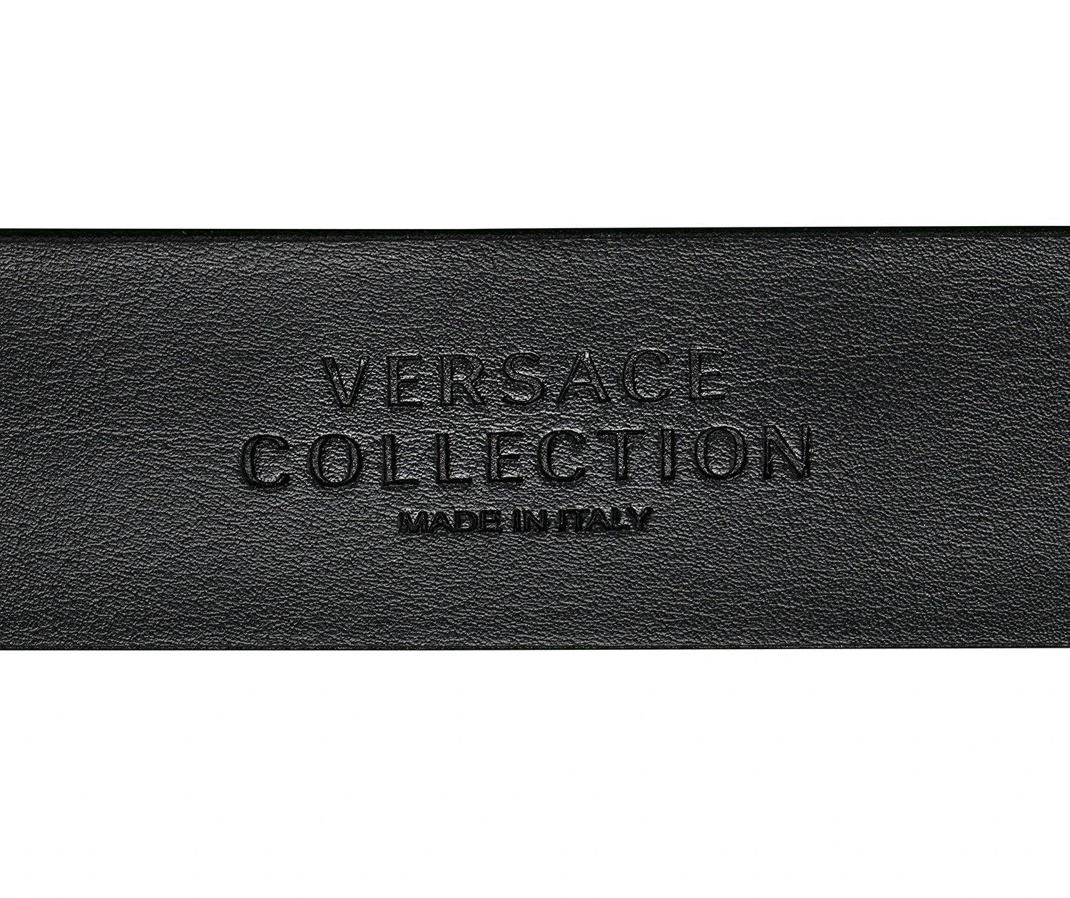 Versace Collection Men’s Grained Leather Silver Medusa Logo Belt. V910144
