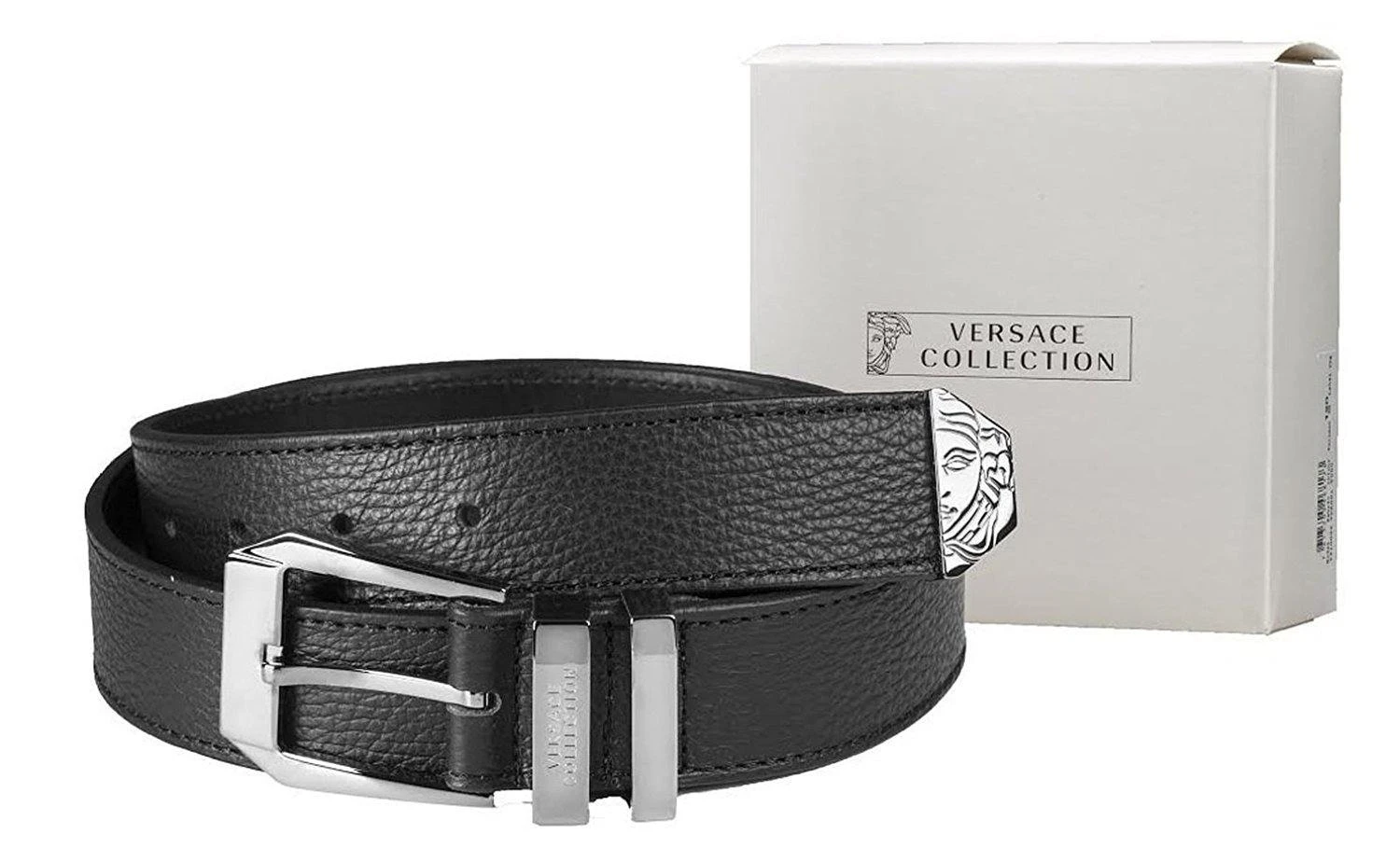 Be the first to review “Versace Collection Men’s Grained Leather Silver Medusa Logo Belt” Cancel reply