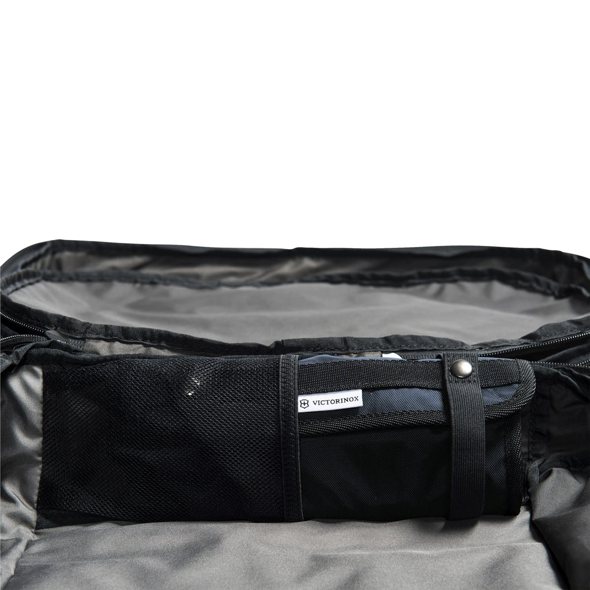 packing and includes a file divider, a zippered storage pocket, a stash