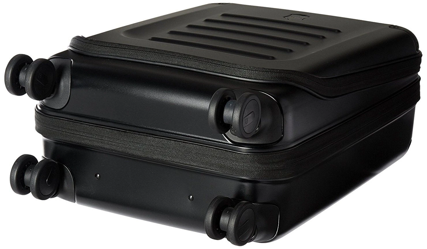 With a zippered expansion system that allows you to adjust the depth of the case for compliance with the requirements of your airline carrier, this is the only carry-on you’ll need. Comfort grip, one-touch, dual-trolley aluminum handle system locks into three different positions – 41 inch (104 cm), 39 inch (99 cm) and 37 inch (94 cm) – to accommodate travelers of various heights and adjusts when transitioning from pushing the bag on four wheels to pulling it on two wheels. Dual-caster wheels feature soft tread offering ideal traction for a smooth roll across any surface while also providing 360 Degree maneuverability and zero weight-in-hand. Break-resistant 100% pure Bayer polycarbonate with stylish, scratch-resistant matte finish delivers superior strength for the highest level of performance. Corner guards provide added protection to areas of the case most prone to impact and abrasion. Features a 3 cm (1.2 inch ) zippered expansion system that allows you to adjust the case for compliance with the carry-on regulations of most airline carriers. Front zippered door with stabilizing straps allows for easy top-load packing. Removable, zippered mesh divider wall stretches for easy packing. Comes with an interchangeable electronics panel that holds up to a 15.6 inch laptop and a tablet and can be inserted in place of the zippered mesh divider. Front organizational panel stores travel essentials . Y-shaped compression straps cover a greater surface area to keep folded items secure. Top haul handle for easy carrying.